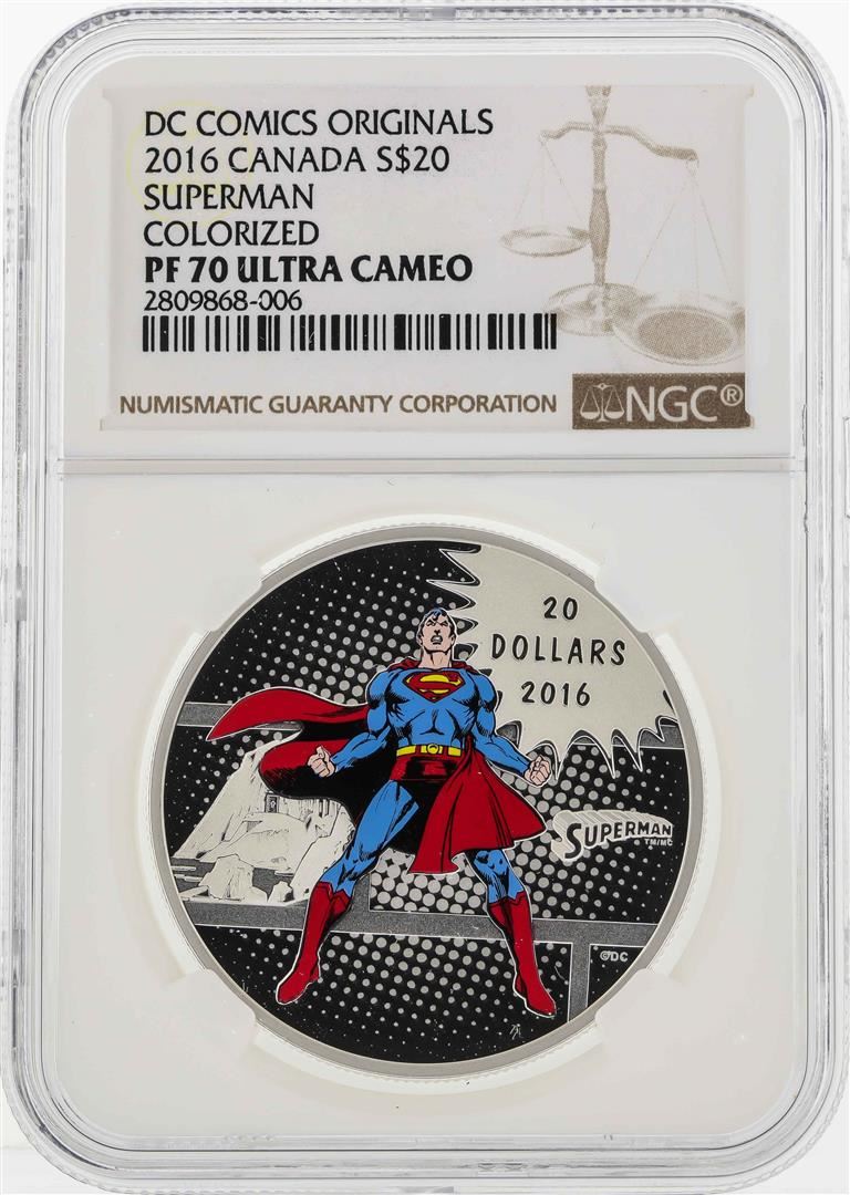 One 2016 Canada $20 Superman Colorized Silver Coin NGC PF70 Ultra Cameo. NGC Certified.
