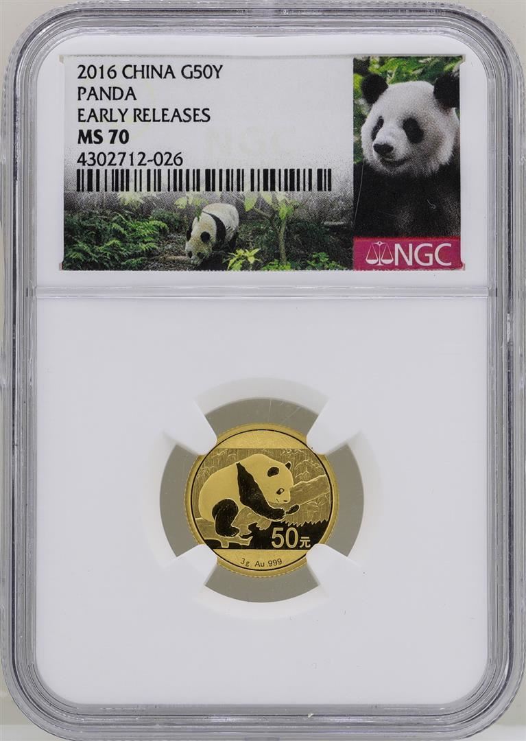 One 2016 China 50 Yuan 3 Gram Panda Gold Coin NGC MS70 Early Releases. NGC Certified.