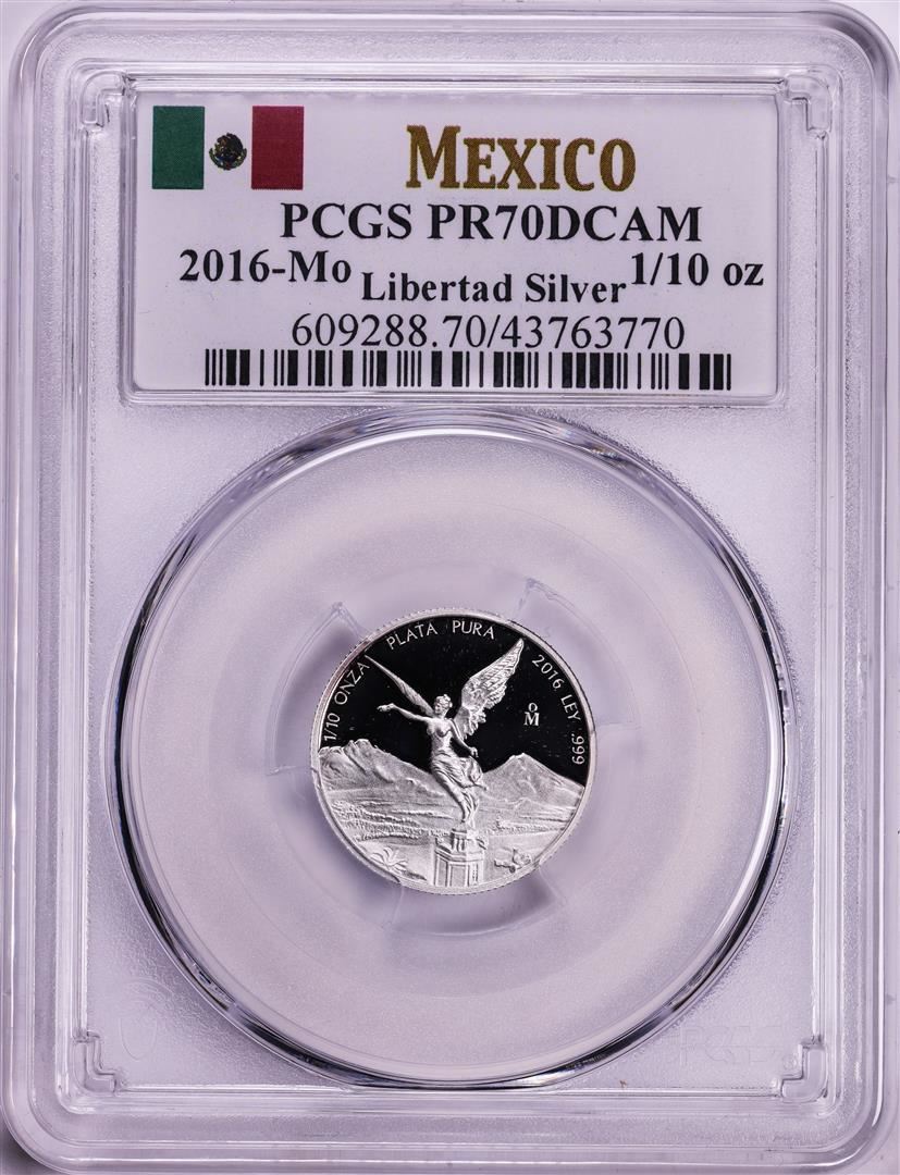 One 2016-Mo Mexico Proof 1/10 oz Silver Libertad Coin PCGS PR70DCAM. PCGS Graded.
