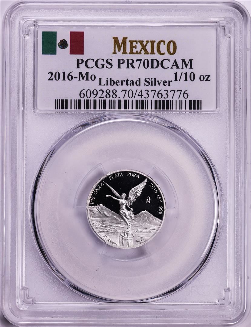 One 2016-Mo Mexico Proof 1/10 oz Silver Libertad Coin PCGS PR70DCAM. PCGS Graded.