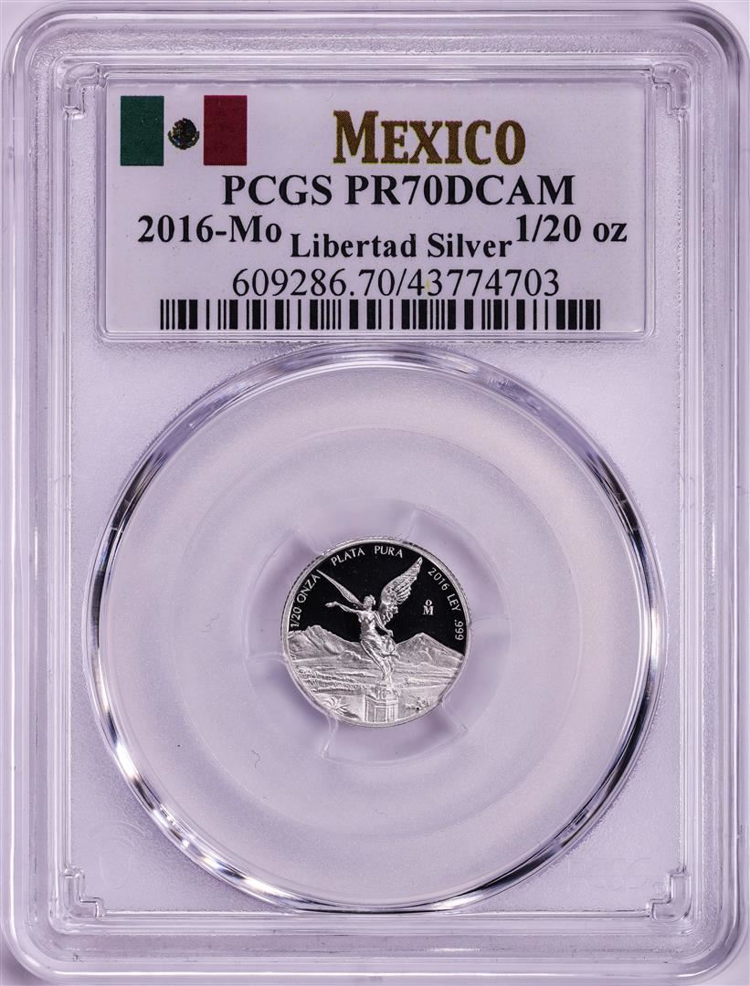 One 2016-Mo Mexico Proof 1/20 oz Silver Libertad Coin PCGS PR70DCAM. PCGS Graded.