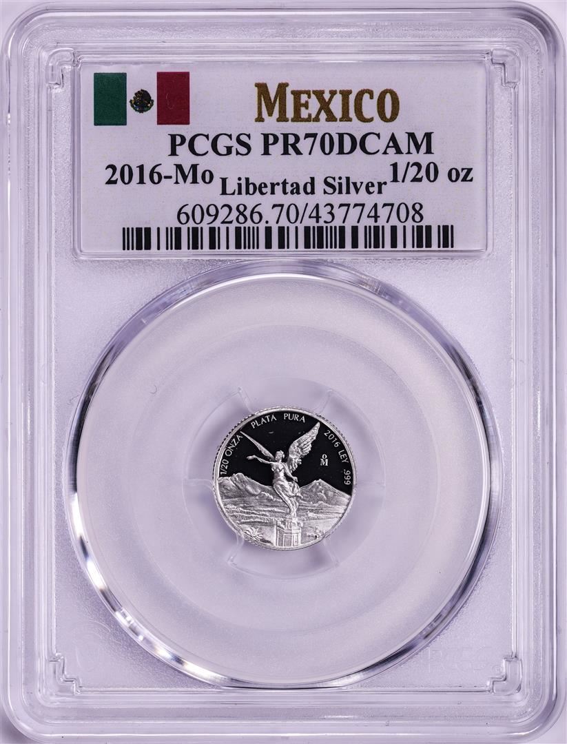 One 2016-Mo Mexico Proof 1/20 oz Silver Libertad Coin PCGS PR70DCAM. PCGS Graded.