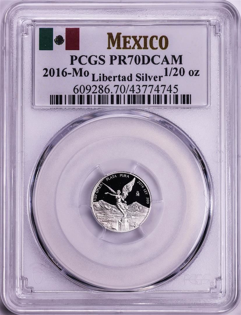 One 2016-Mo Mexico Proof 1/20 oz Silver Libertad Coin PCGS PR70DCAM. PCGS Graded.