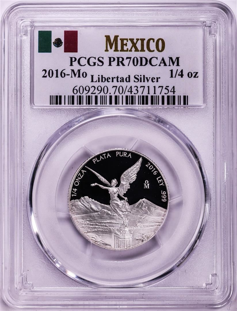 One 2016-Mo Mexico Proof 1/4 oz Silver Libertad Coin PCGS PR70DCAM. PCGS Graded.