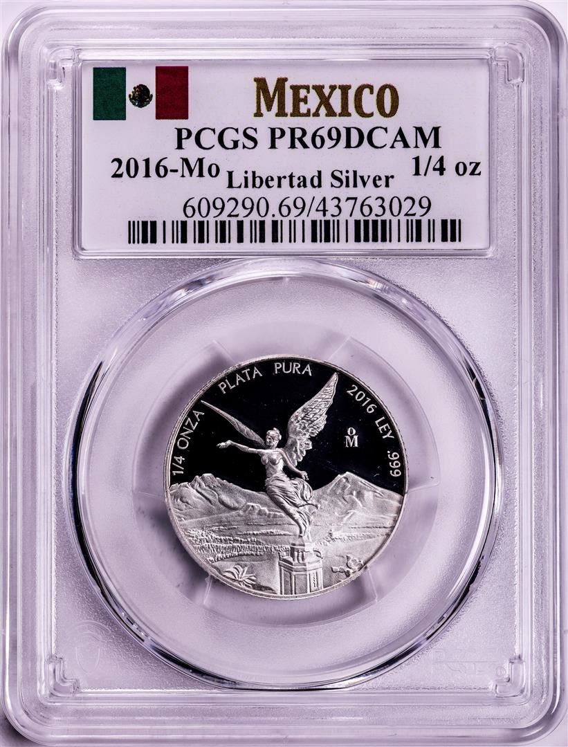 One 2016-Mo Mexico Proof 1/4 oz Silver Libertad Coins PCGS PR69DCAM. PCGS Graded.