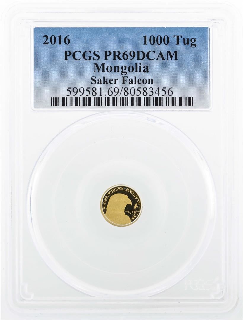 One 2016 Mongolia 1000 Tug Saker Falcon Gold Coin PCGS PR69DCAM. PCGS Graded.