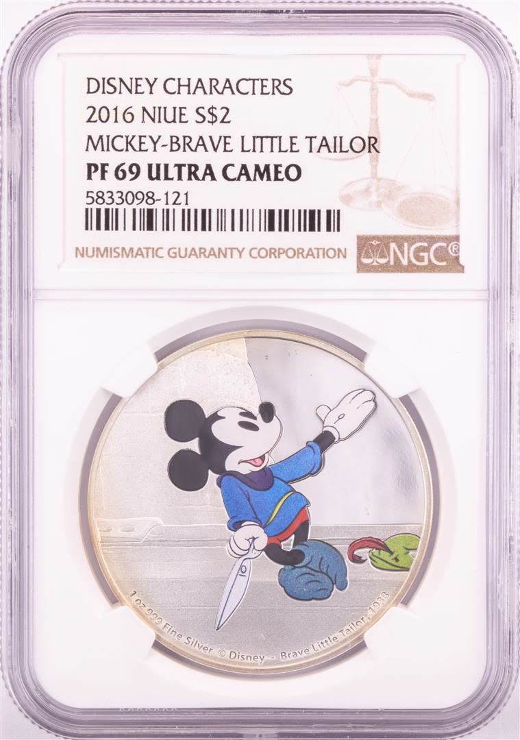 One 2016 Niue $2 Proof Disney Mickey-Brave Little Tailor Silver Coin NGC PF69 Ultra Cameo. NGC Certified.