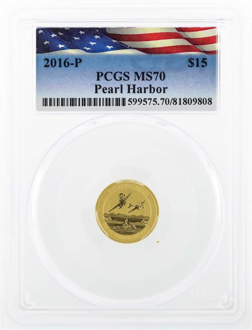 2016-P $15 Pearl Harbor Gold Coin PCGS MS70