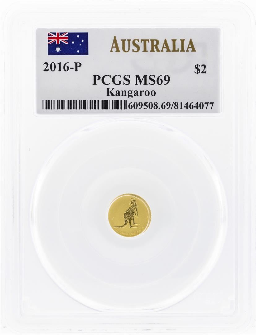 One 2016-P $2 Australia Kangaroo Gold Coin PCGS MS69. PCGS Graded.