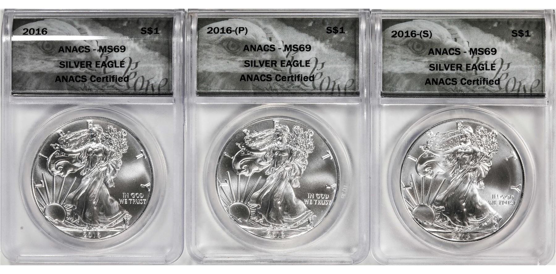 2016-(P)(S) $1 American Silver Eagle (3) Coin Set ANACS MS69