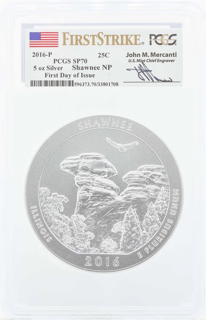 One 2016-P Shawnee 5 oz. Silver Quarter Proof Coin PCGS SP70. PCGS Graded.