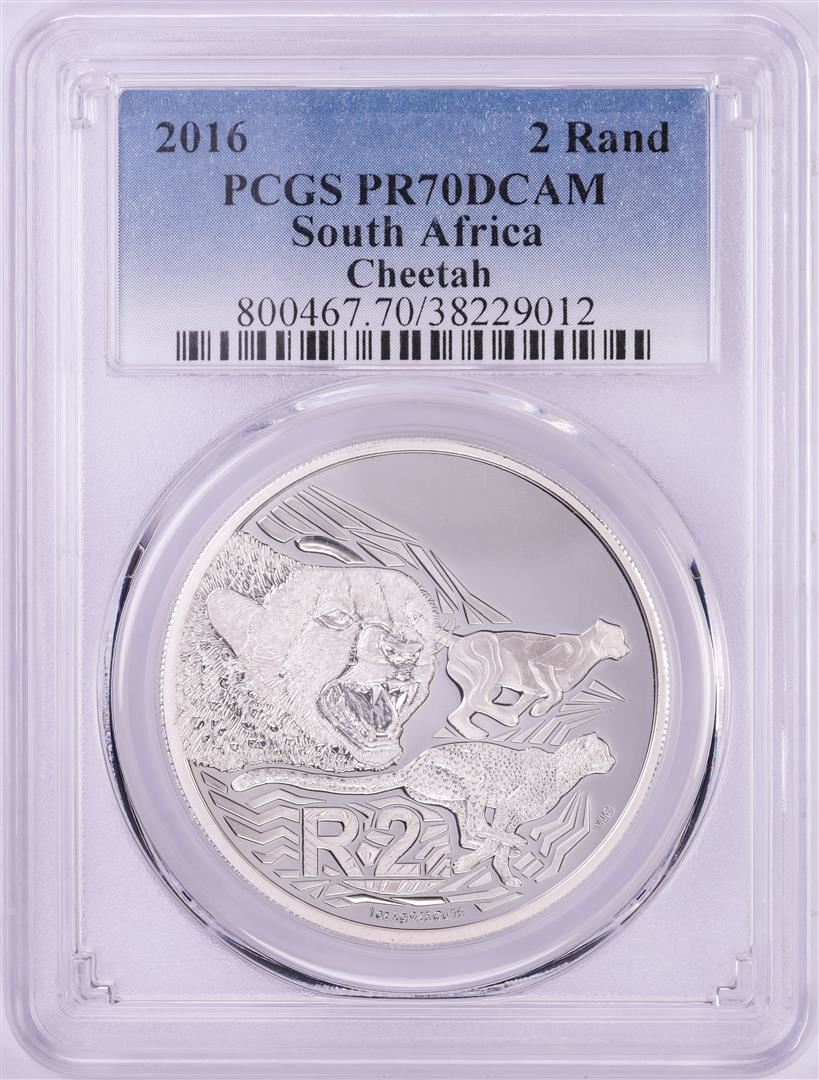 One 2016 Proof South Africa 2 Rand Cheetah Silver Coin PCGS PR70DCAM. PCGS Graded.