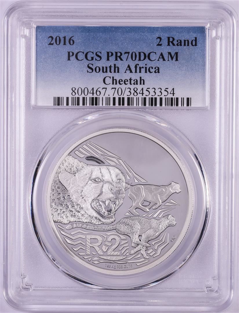 One 2016 Proof South Africa 2 Rand Cheetah Silver Coin PCGS PR70DCAM. PCGS Graded.