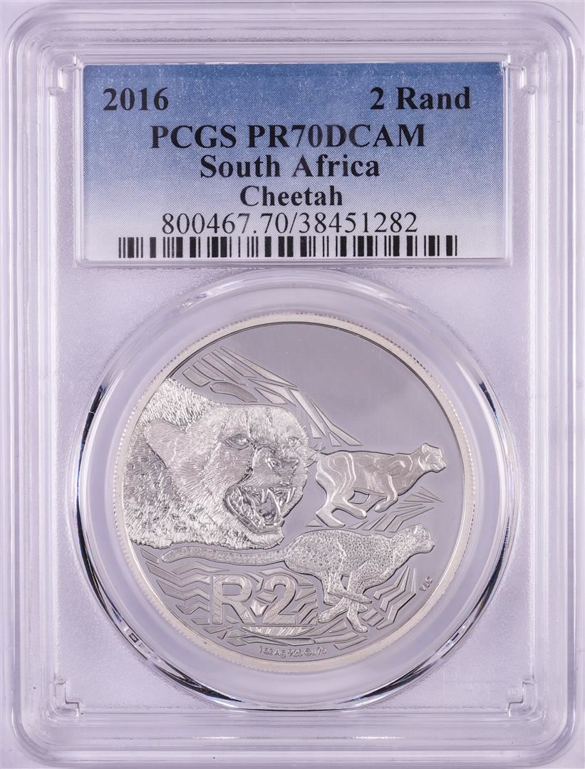 One 2016 Proof South Africa 2 Rand Cheetah Silver Coin PCGS PR70DCAM. PCGS Graded.