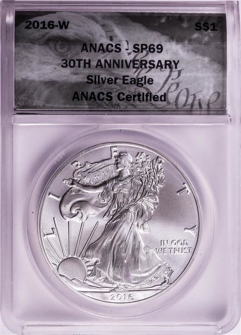 2016-W $1 Burnished American Silver Eagle Coin ANACS SP69