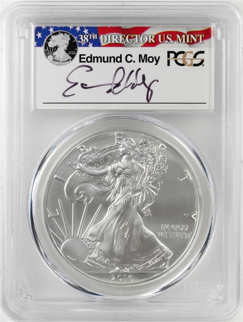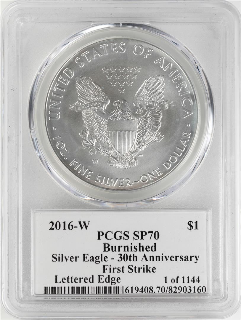 One 2016-W $1 Burnished American Silver Eagle Coin PCGS SP70 First Strike Moy Signature. PCGS Graded.