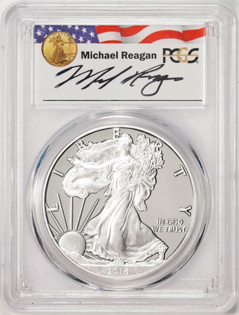 2016-W $1 Proof American Silver Eagle Coin PCGS PR70DCAM Michael Reagan Signed