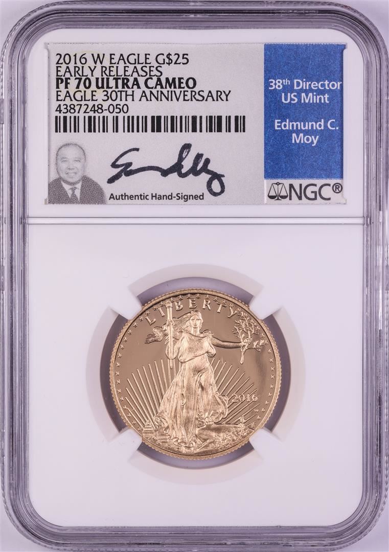 One 2016-W $25 Proof American Gold Eagle Coin NGC PF70 Ultra Cameo Edmund Moy Signature. NGC Certified.