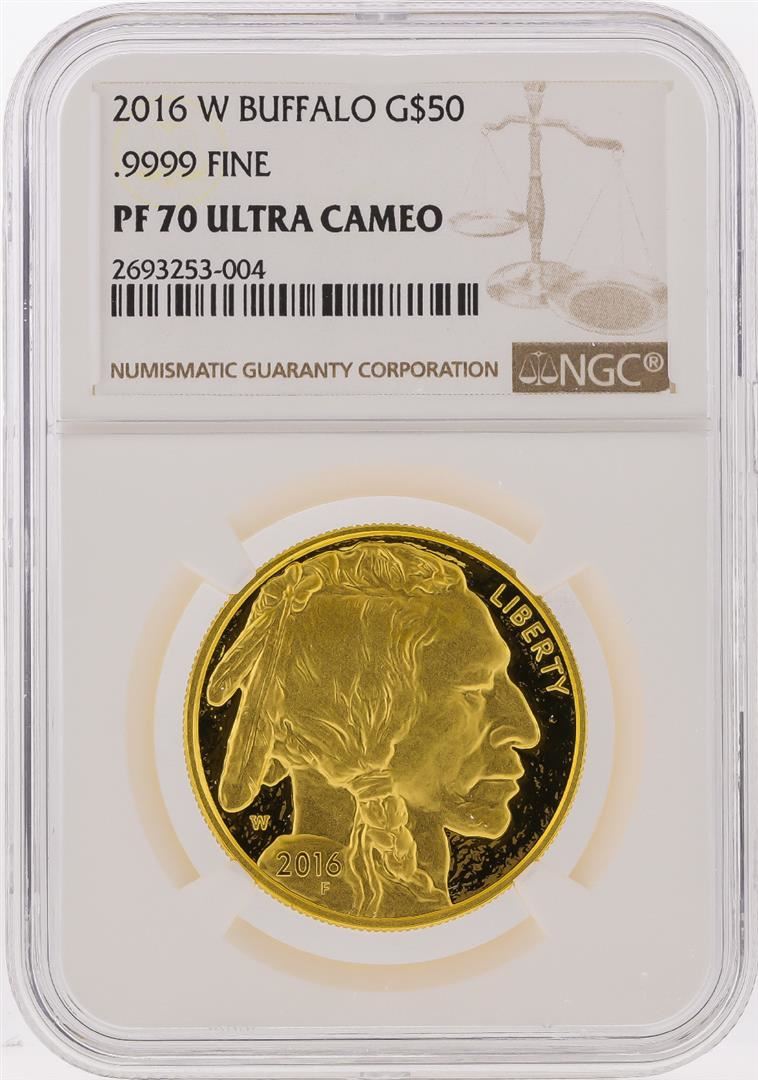 One 2016-W $50 1 oz Proof Gold Buffalo Coin NGC PF70 Ultra Cameo. NGC Certified.