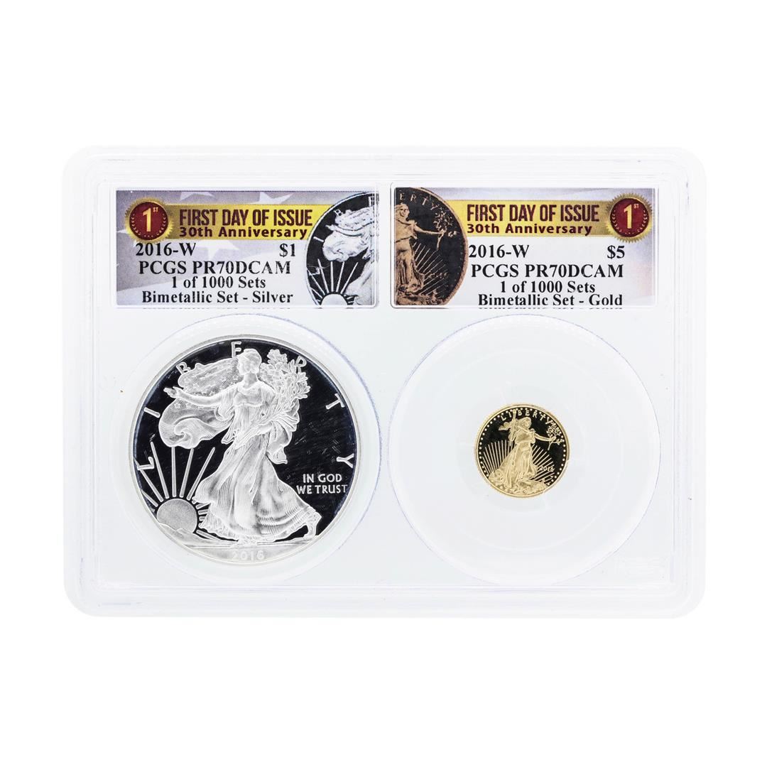 One 2016-W American Silver & Gold Eagle 30th Anniversary Proof Bimetallic Set PCGS PR70DCAM. PCGS Graded.