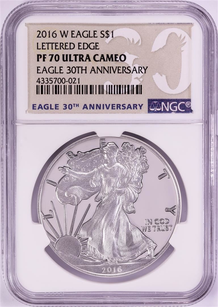 2016-W Lettered Edge $1 Proof American Silver Eagle Coin NGC PF70 Ultra Cameo