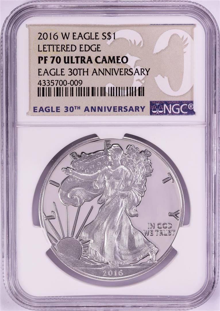 2016-W Lettered Edge $1 Proof American Silver Eagle Coin NGC PF70 Ultra Cameo