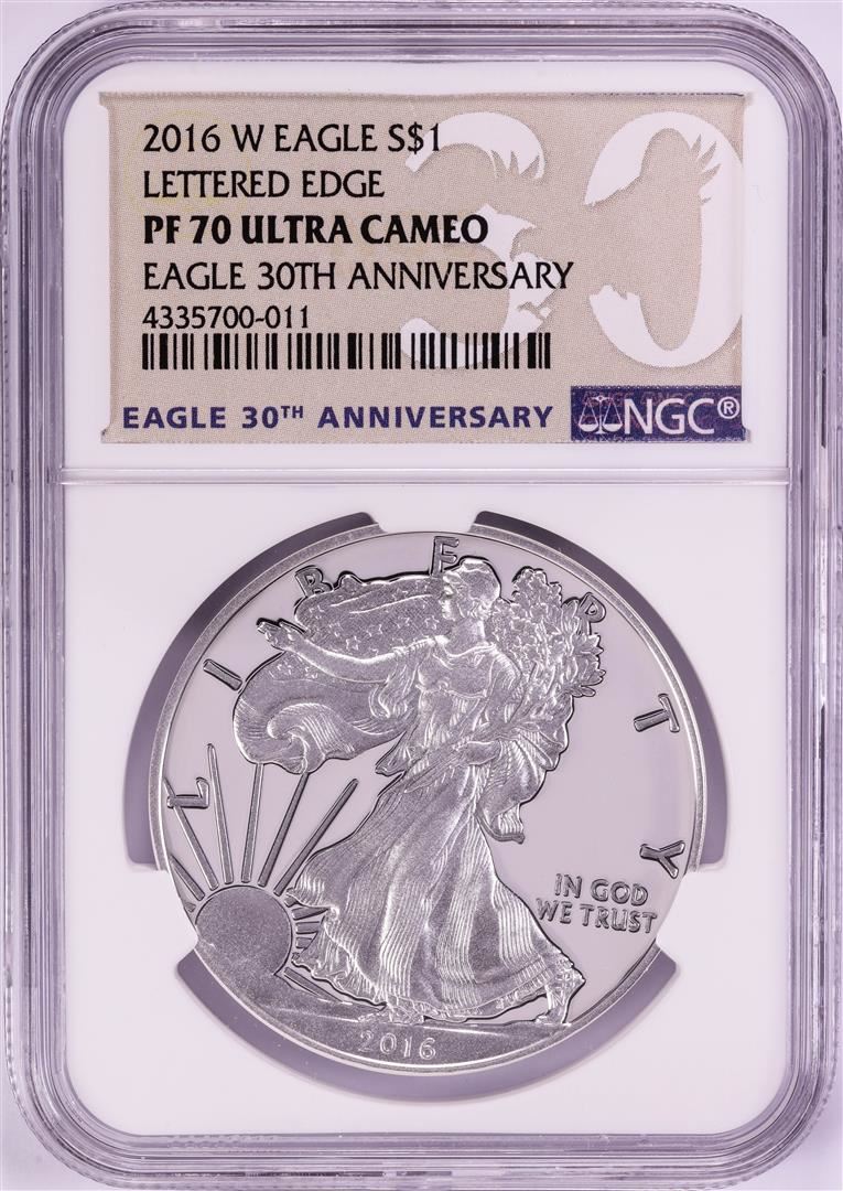2016-W Lettered Edge $1 Proof American Silver Eagle Coin NGC PF70 Ultra Cameo