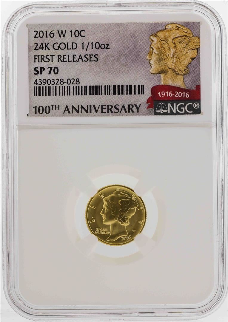 2016-W Mercury Dime Gold Centennial Commemorative Coin NGC SP70 First Release