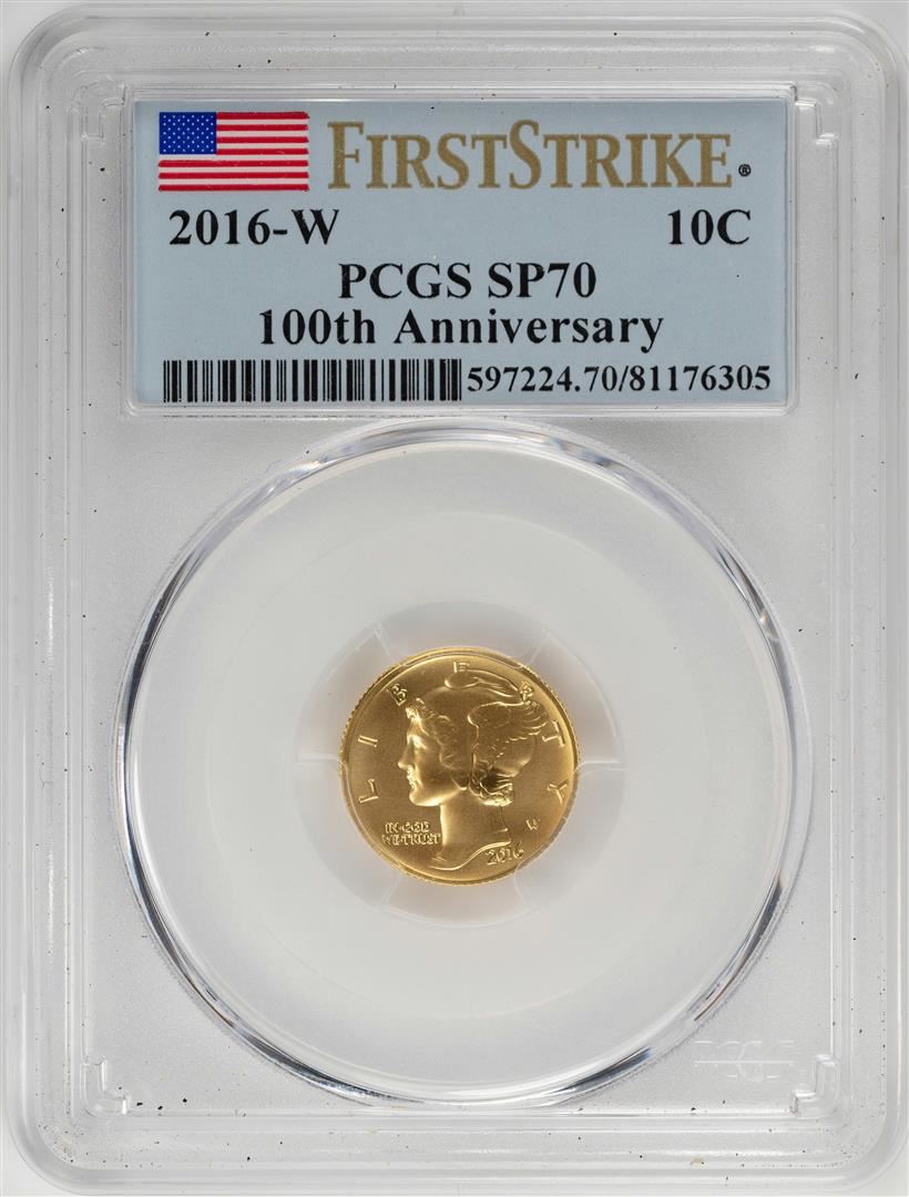 2016-W Mercury Dime Gold Centennial Commemorative Coin PCGS SP70 First Strike