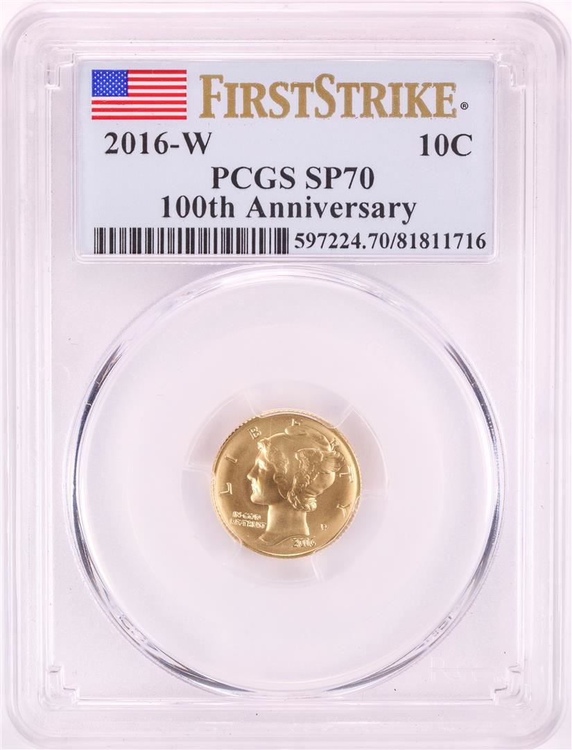 2016-W Mercury Dime Gold Centennial Commemorative Coin PCGS SP70 First Strike