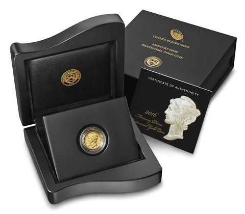 2016-W Mercury Dime Gold Centennial Commemorative Coin with Box/Coa