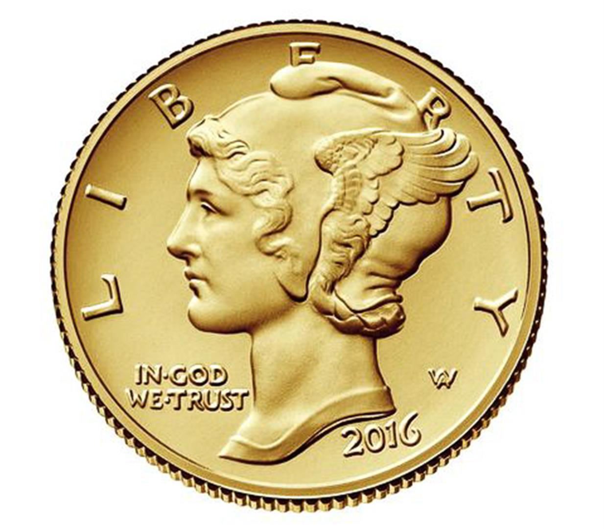 Introducing the 2016 Mercury Dime Centennial Gold Coin. This is an event 100 years in the making. Beautifully struck in .9999 fine 24-karat gold, the Mercury Dime Centennial Gold Coin features Adolph A. Weinman's original Winged Liberty design. This gold