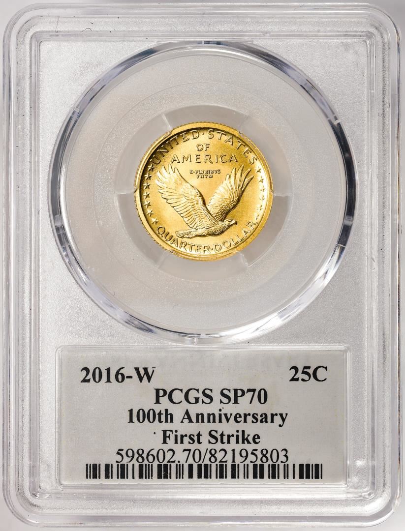2016-W Standing Liberty Quarter 100th Anniversary Gold Coin PCGS SP70 First Strike