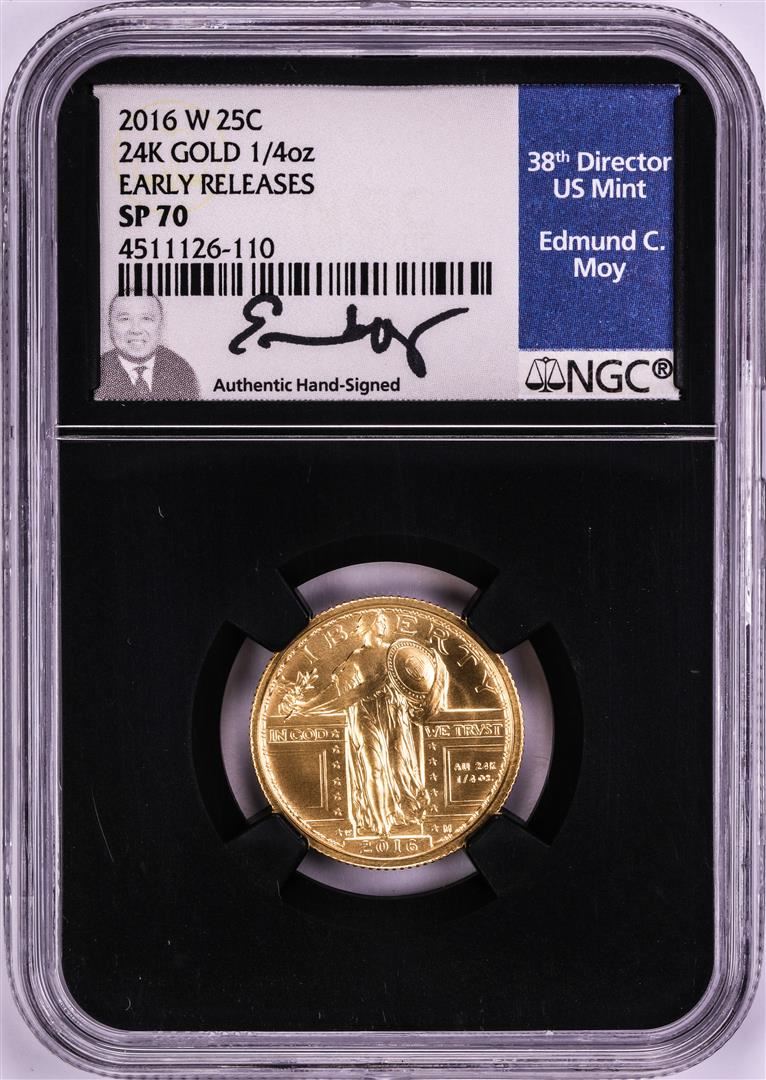 2016-W Standing Liberty Quarter Gold Coin NGC SP70 Edmund Moy Signature
