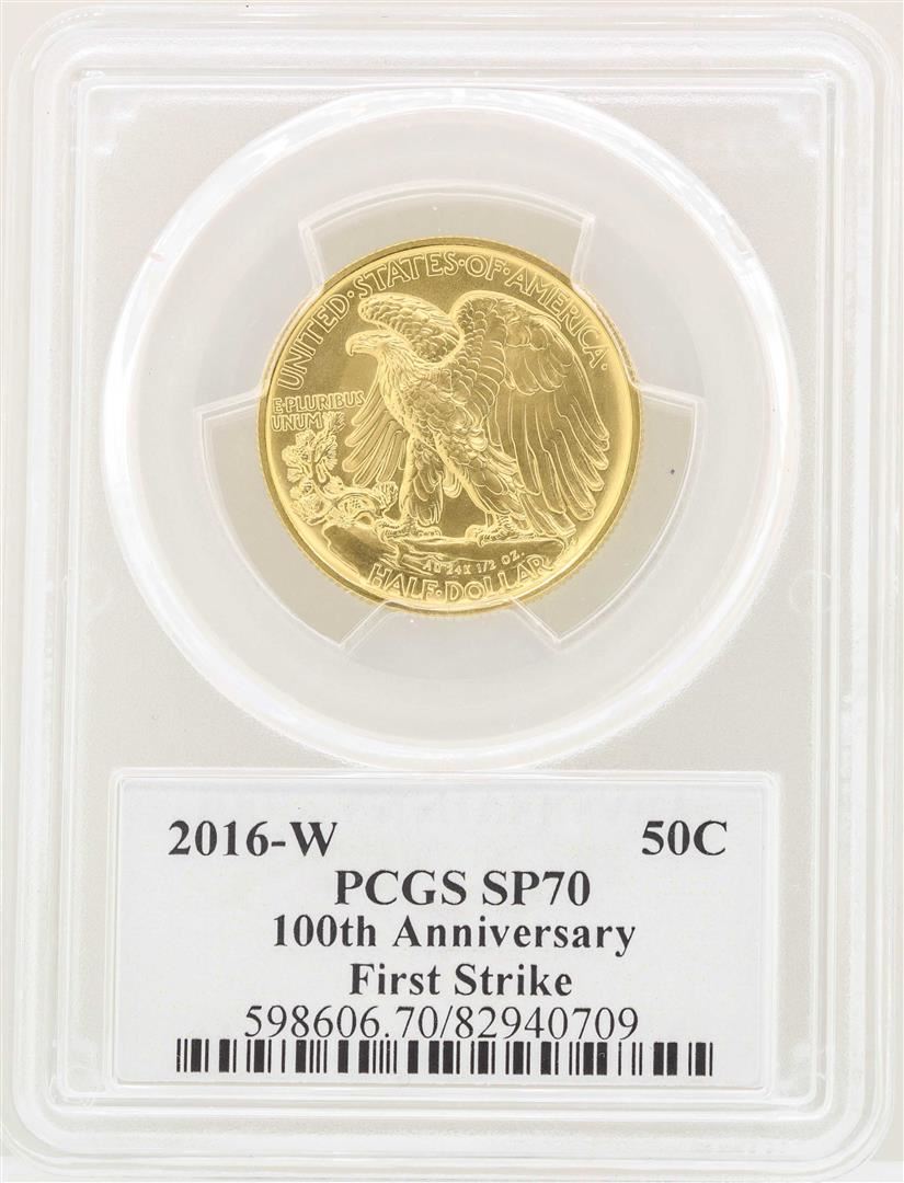 2016-W Walking Liberty Half Dollar Gold Coin 100th Anniversary FS PCGS SP70