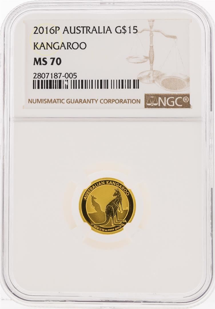 One 2016P $15 Australia Kangaroo Gold Coin NGC MS70. NGC Certified.