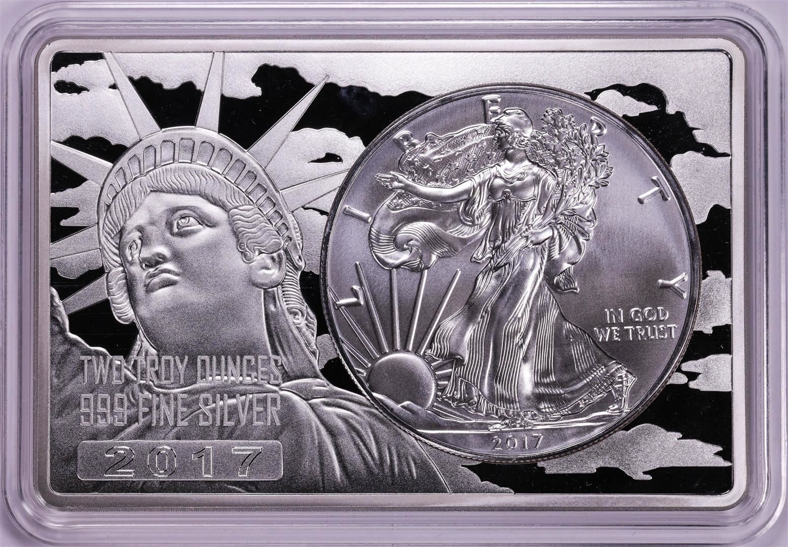 One 2017 $1 American Silver Eagle Coin & 2oz Silver Bar Set.