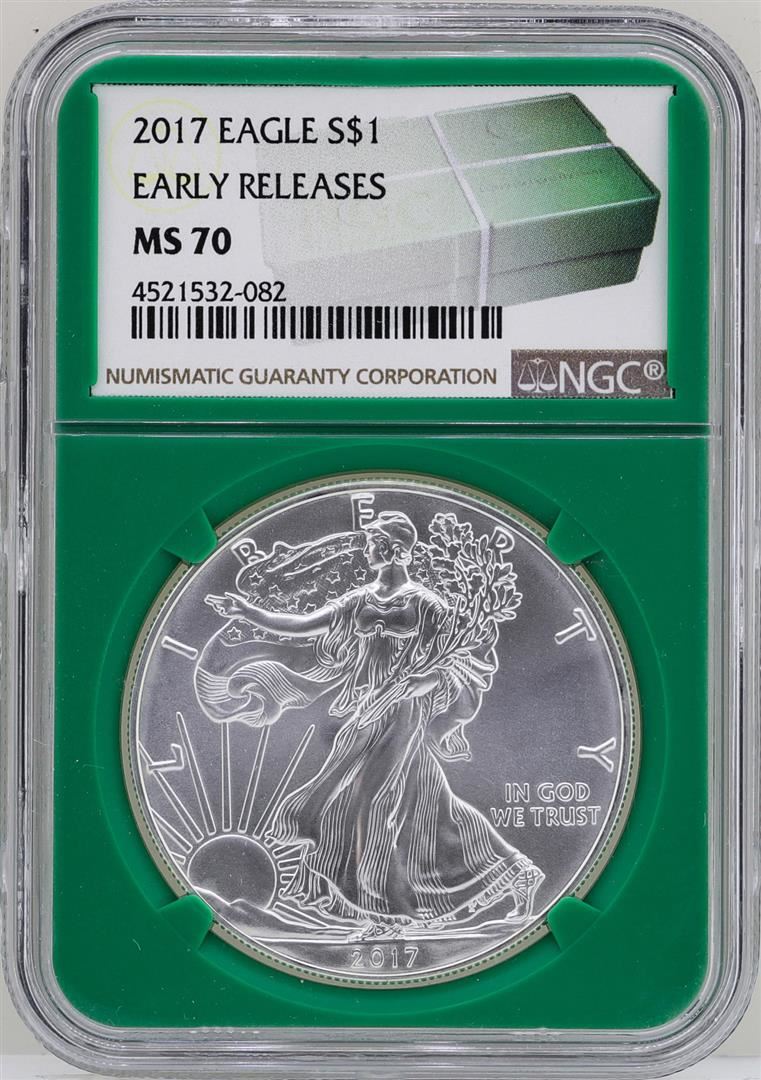 2017 $1 American Silver Eagle Coin NGC MS70 Early Releases Green Core