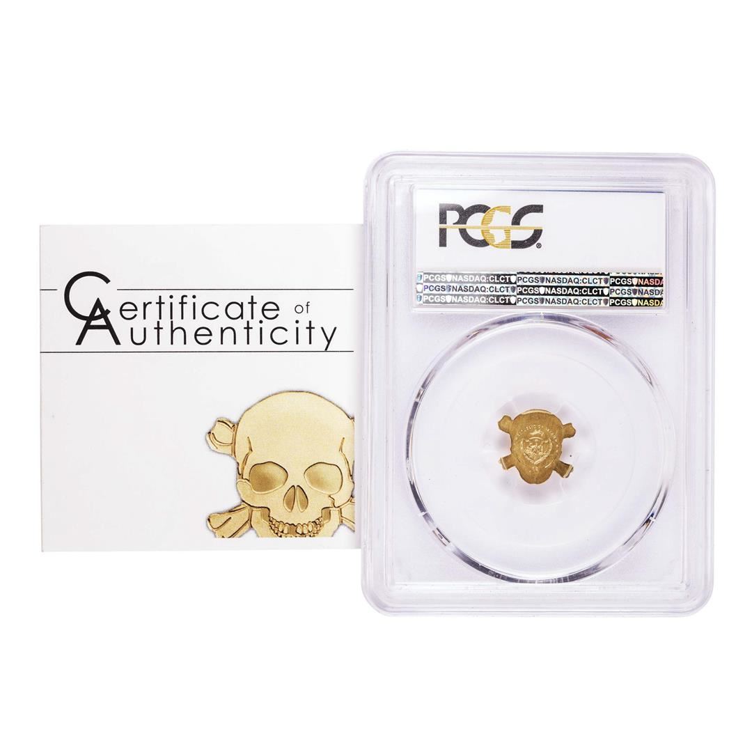 One 2017 $1 Palau Golden Pirate Skull Gold Coin PCGS MS70 First Day of Issue w/ COA. PCGS Graded.