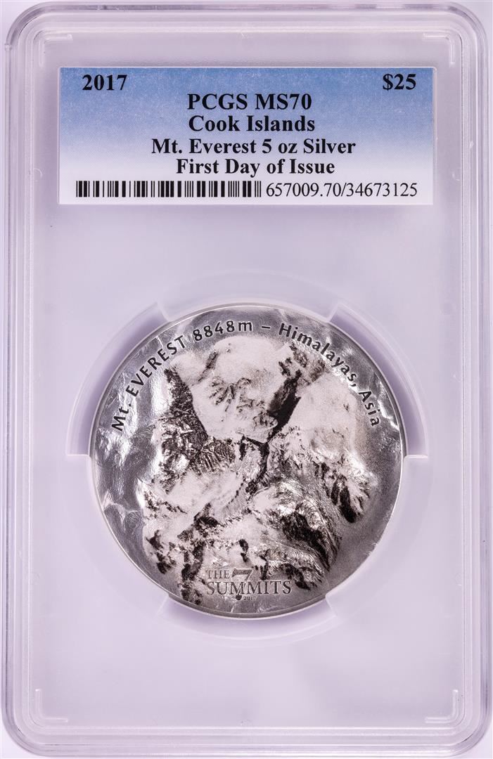 One 2017 $25 Cook Islands Mt. Everest 5oz Silver Coin PCGS MS70 First Day of Issue. PCGS Graded.