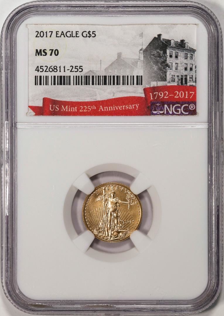 One 2017 $5 American Gold Eagle Coin NGC MS70. NGC Certified.