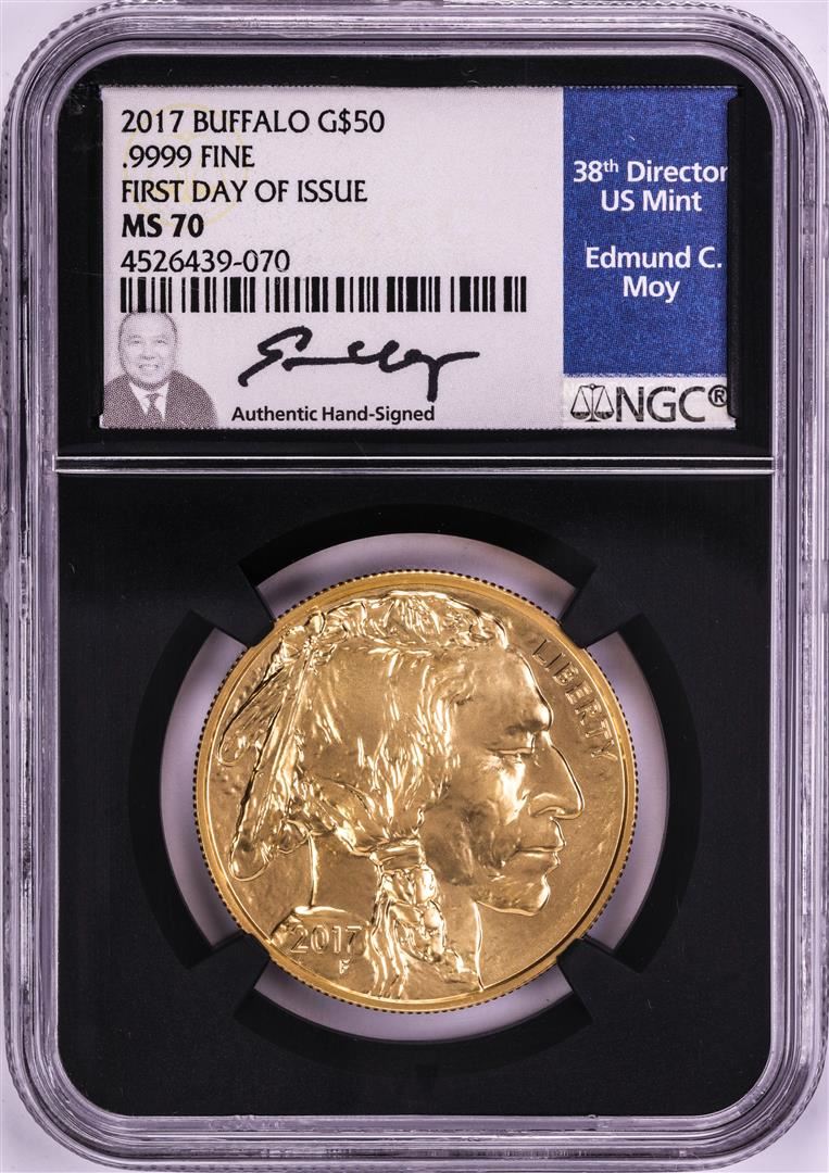 One 2017 $50 American Gold Buffalo Coin NGC MS70 First Day of Issue Moy Signature. NGC Certified.