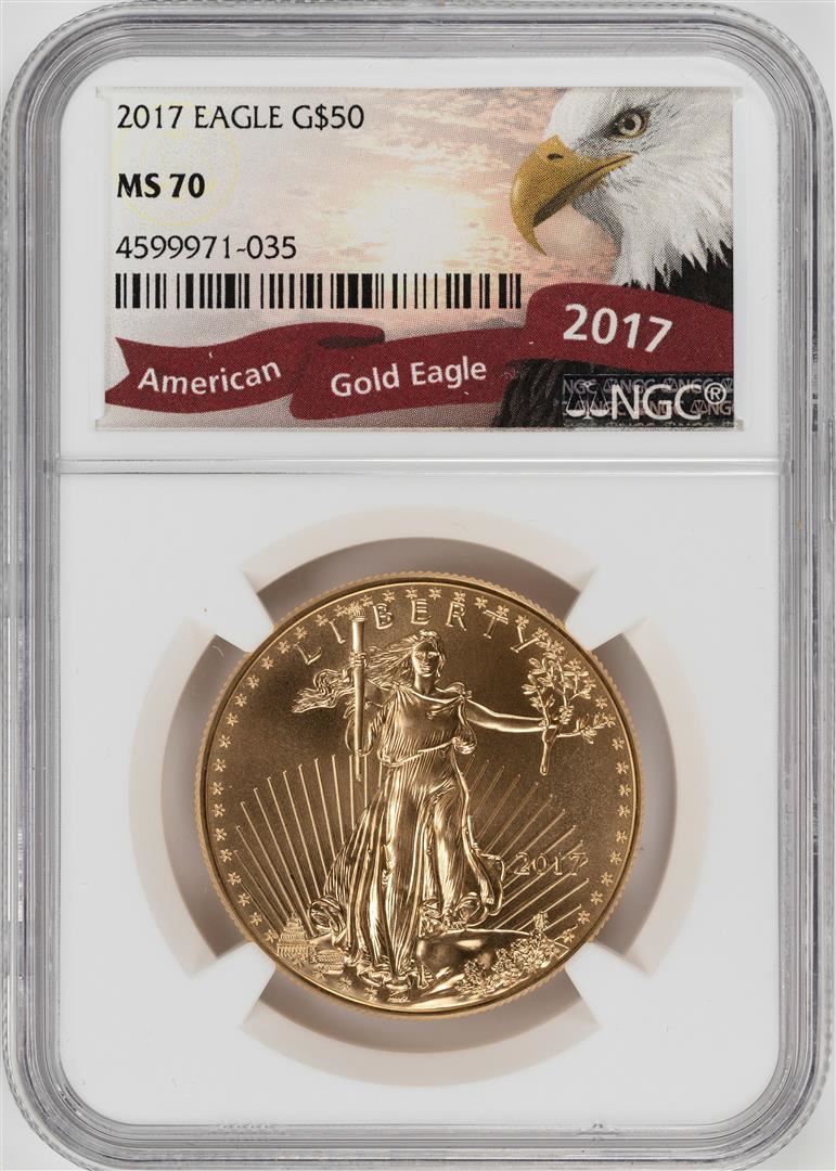One 2017 $50 American Gold Eagle Coin NGC MS70. NGC Certified.