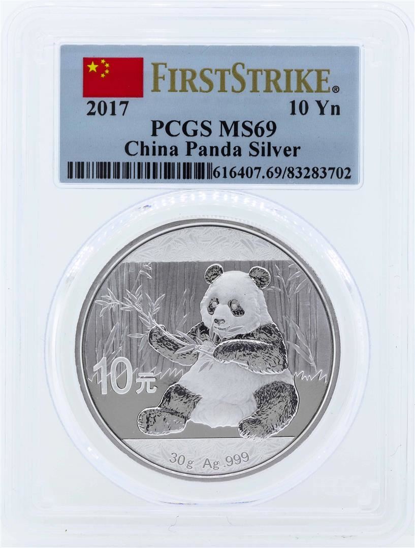 One 2017 China 10 Yuan Silver Panda Coin PCGS MS69. PCGS Graded.