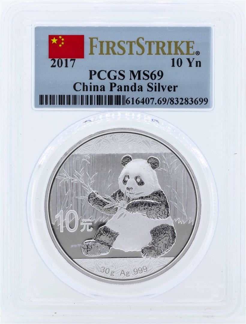 One 2017 China 10 Yuan Silver Panda Coin PCGS MS69. PCGS Graded.