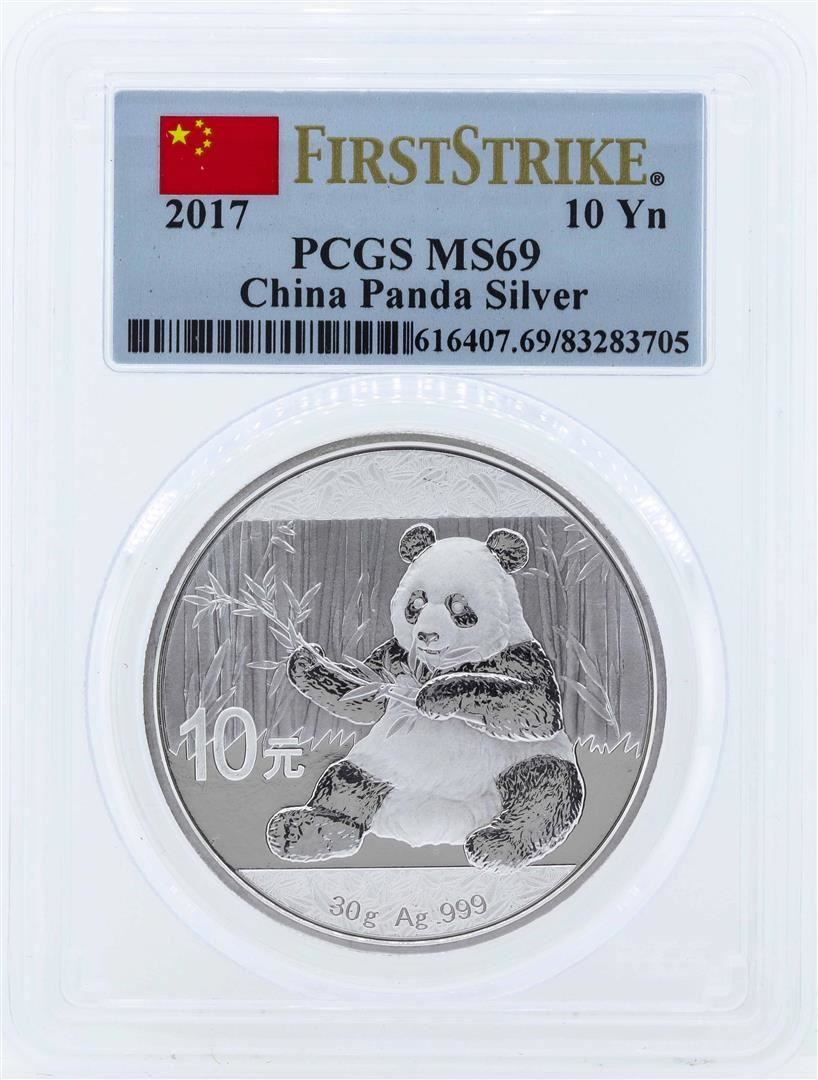 One 2017 China 10 Yuan Silver Panda Coin PCGS MS69. PCGS Graded.