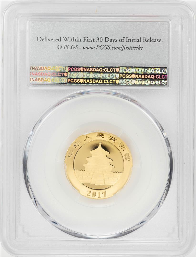 One 2017 China 100 Yuan Panda Gold Coin PCGS MS69 First Strike. PCGS Graded.