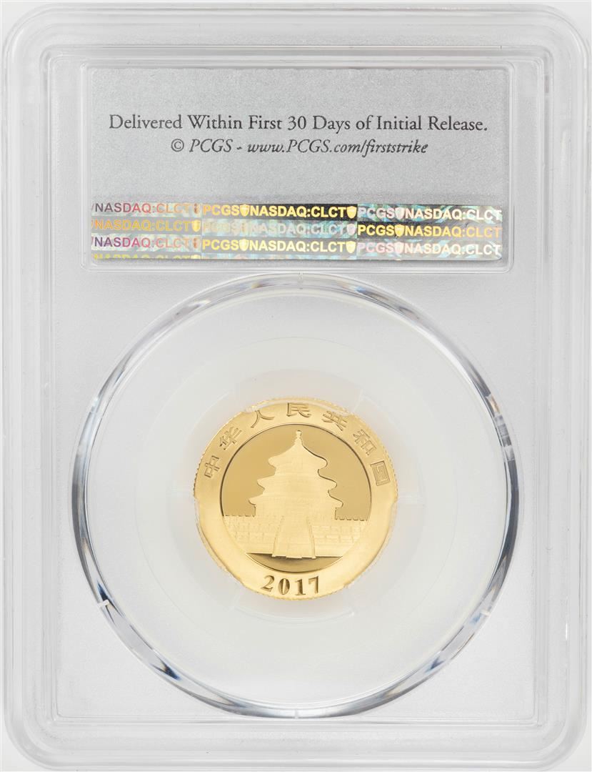 One 2017 China 100 Yuan Panda Gold Coin PCGS MS69 First Strike. PCGS Graded.