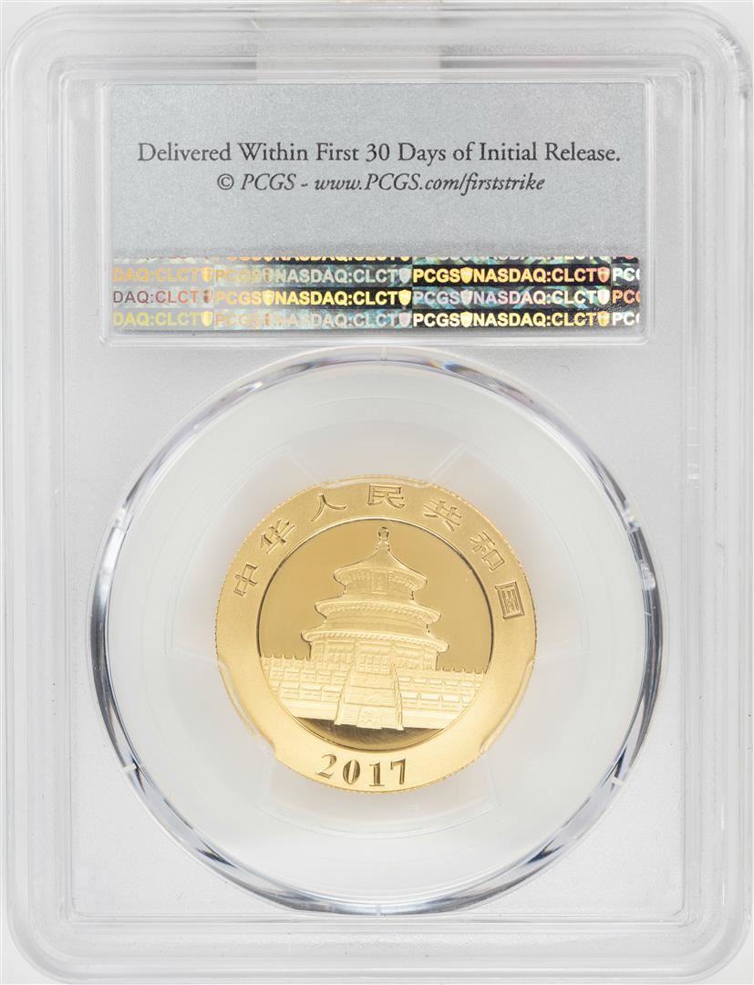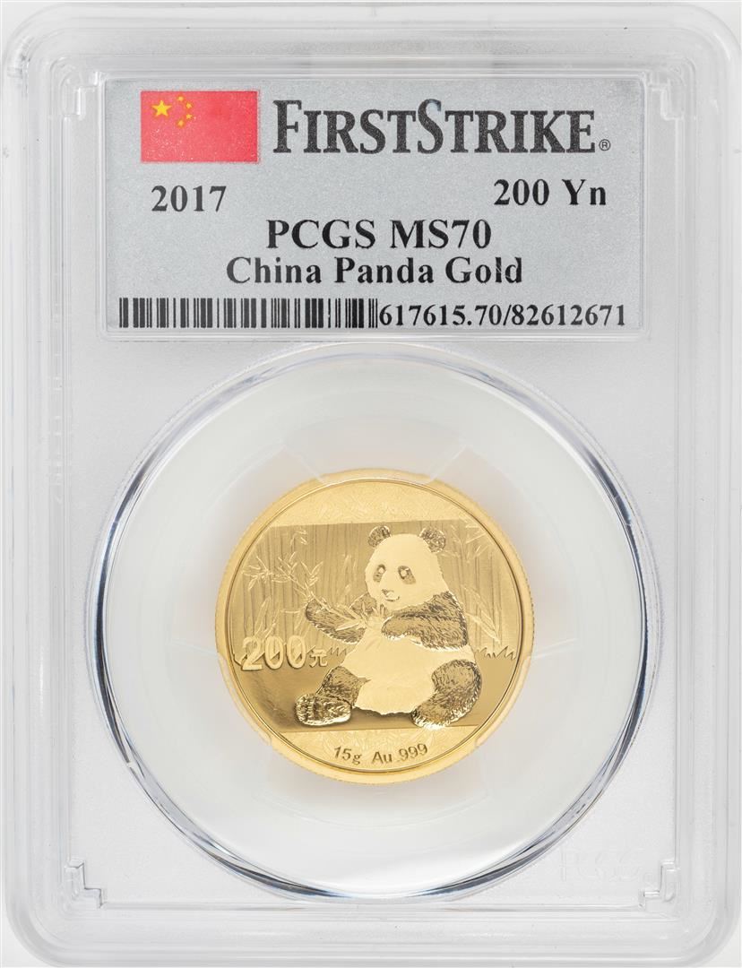 One 2017 China 200 Yuan Panda Gold Coin PCGS MS70 First Strike. PCGS Graded.