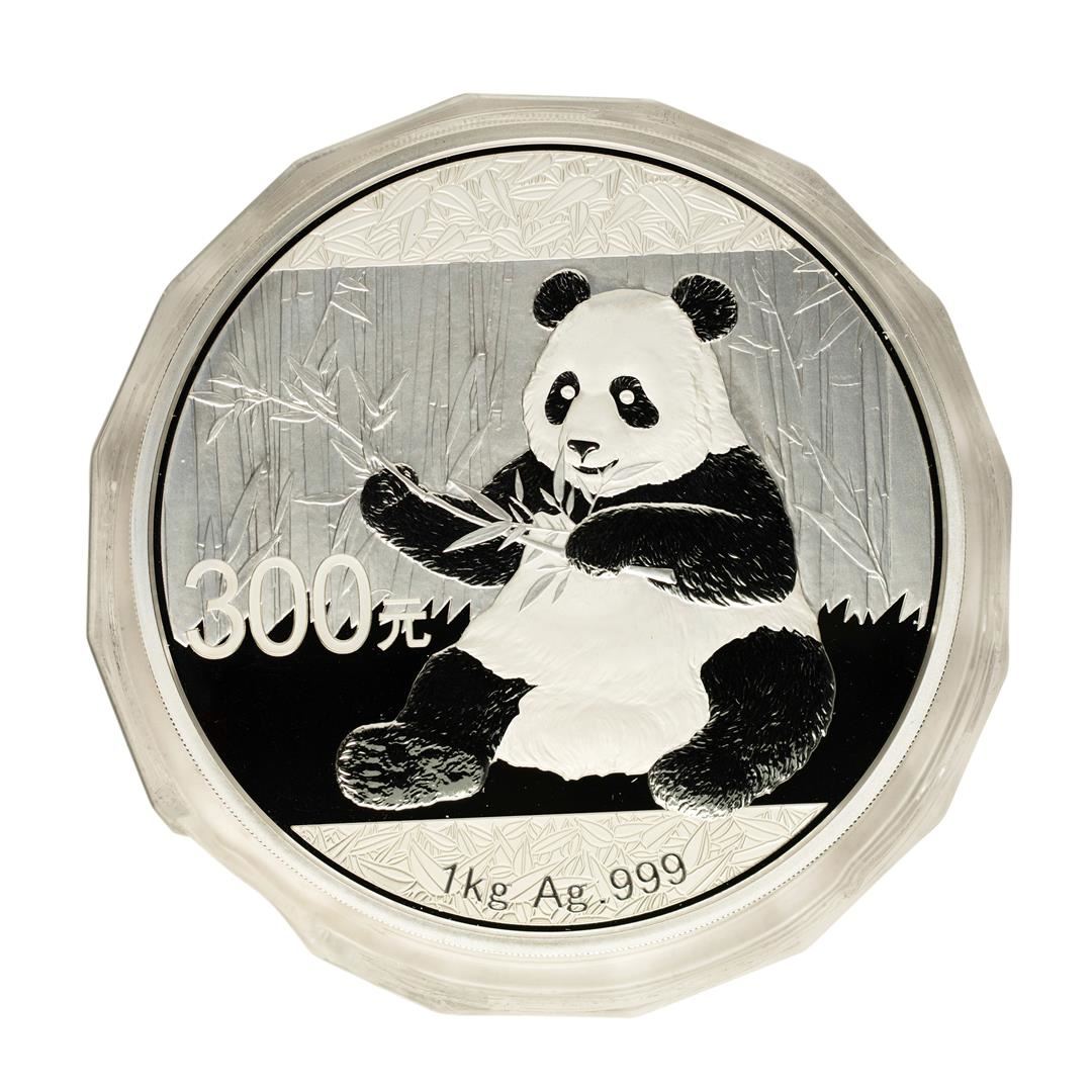 One 2017 China 300 Yuan Kilo Panda Silver Coin w/ Box & COA, please note that the Plastic capsule on the case has been cracked however it doesn't impact the coin in anyway.